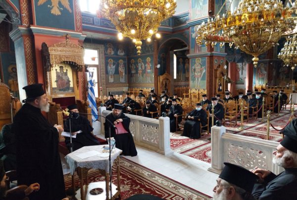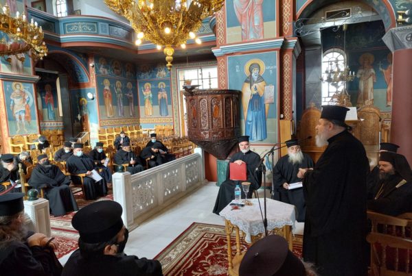 Στην Ιερατική Σύναξη παρέστη, εν όψει της ενάρξεως των Επιμορφω­τικών Σεμιναρίων της Ιεράς Μητροπόλεώς μας και ο Πανοσιολογιώτατος Αρχιμανδρίτης Θεολόγος Αλεξανδράκης, Αν. Διευθυντής του Ιδρύματος Ποιμαντικής Επιμορφώσεως της Ιεράς Αρχιεπισκοπής Αθηνών, ο οποίος αναφέρθηκε στην σημασία και τους σκοπούς των Επιμορφωτικών Σεμιναρίων και στην δυνατότητα των Κληρικών να εμπλουτίσουν τις γνώσεις τους σε διάφορα ποιμαντικά θέματα.