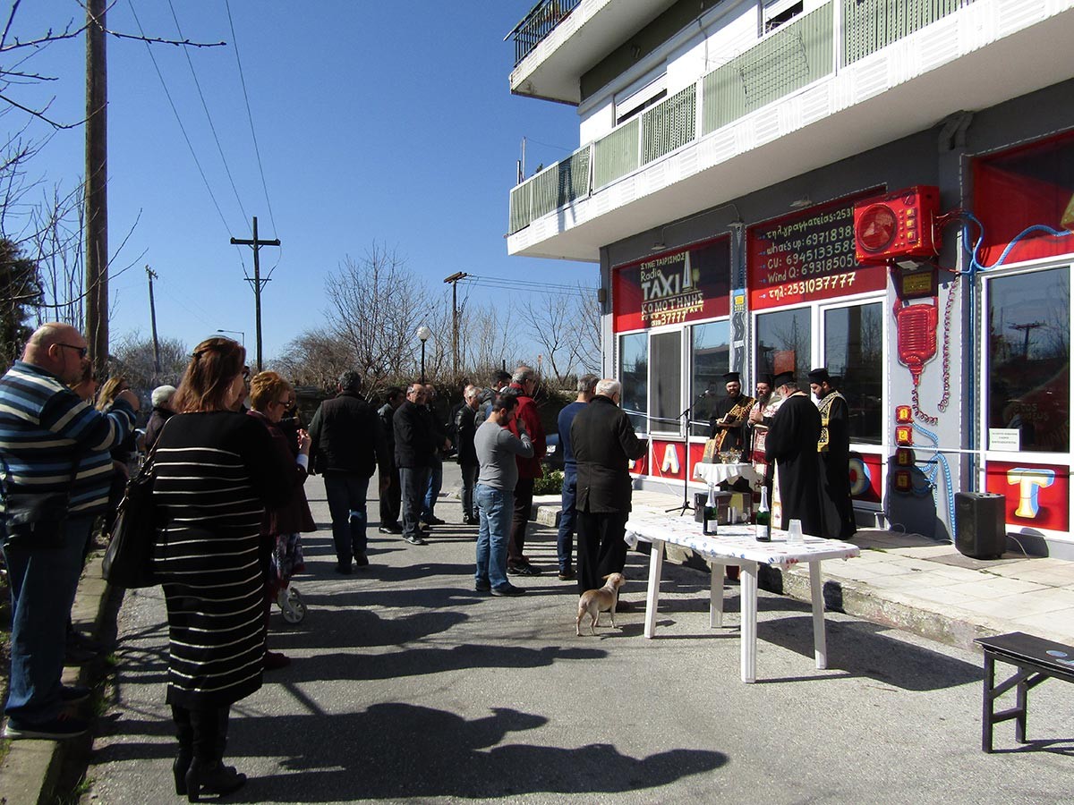 “Ο Θεός να είναι στο τιμόνι σας”, ευχήθηκε ο μητροπολίτης Μαρωνείας και Κομοτηνής κος Παντελεήμων, τελώντας σήμερα το μεσημέρι τα εγκαίνια της νέας στέγης του Συνεταιρισμού Ραδιοταξί Κομοτηνής. Σε νέο χώρο, δίπλα ακριβώς στις γέφυρες Κομοτηνής, στην οδό Κερασούντος 2, φιλοτεχνημένο από τον καλλιτέχνη Στάθη Γκεβρέκη, στεγάζεται ο συνεταιρισμός και όλα τα μέλη του ήταν σήμερα εκεί στα επίσημα εγκαίνια. Παρών ο πρόεδρος της ΟΕΒΕΣ Ανέστης Βαφειάδης που απέδωσε τα εύσημα στους ανθρώπους του ταξί που επένδυσαν στην πόλη, ο αντιδήμαρχος Οικονομικών Δημήτρης Πολιτειάδης, ο Ανδρέας Κακαζάνης πρόεδρος σωματείου ιδιοκτητών ταξί και αγοραίων Ν. Ροδόπης.