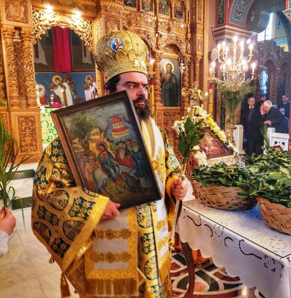 Ο Σεβασμιώτατος προέτρεψε τους πιστούς που κρατούσαν τα βάια των φοινίκων, κατά μίμηση όσων υποδέχθηκαν τον Μεσσία που εισόδευσε στην Αγία Πόλη, να συνακολουθήσουν Αυτόν και να διατηρούν μέσα τους την ελπίδα και τη βεβαιότητα της προσωπικής τους Ανάστασης.