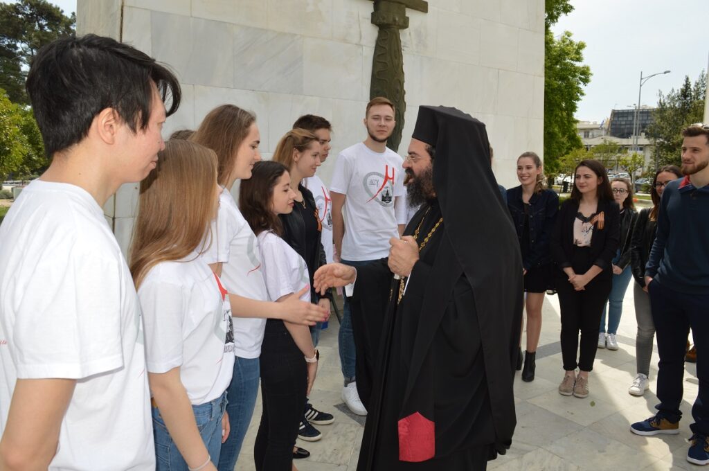 Μια διαφορετική χροιά στις συνήθως υποτονικές εκδηλώσεις του εορτασμού των Εθνικών Αγώνων και της Εθνικής Αντίστασης κατά του ναζισμού και του φασισμού που πραγματοποιούνται κάθε χρόνο στις 9 Μαΐου, έδωσαν οι Ρώσοι φοιτητές της Ανώτατης Σχολής Μετάφρασης του Κρατικού Πανεπιστημίου Μόσχας Μ. Β. Λομονόσοβ, μαζί με συναδέρφους τους από το Τμήμα Γλώσσας, Φιλολογίας και Πολιτισμού Παρευξείνιων Χωρών, που παρέστησαν στην κατάθεση στεφάνων που πραγματοποιήθηκε στο Ηρώο Κομοτηνής. Μετά το πέρας της τελετής, ο Μητροπολίτης Μαρωνείας και Κομοτηνής κ. Παντελεήμων συνομίλησε με τους φοιτητές, τους οποίους συνεχάρη για αυτή τους την πρωτοβουλία και την παρουσία τους στην πόλη.