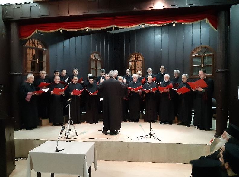 Κατόπιν, τά μέλη τῆς χορωδίας τοῦ Συλλόγου Φίλων Βυζαντινῆς Μουσικῆς ὑπό τήν Διεύθυνσιν τοῦ Ἀναπληρωτοῦ Χοράρχου κ. Γρηγορίου Παπαγιάννη, Καθηγητοῦ τοῦ Δ.Π.Θ., ἀπέδωσαν ἐπιλεγμένα ἀποσπάσματα ἐκ Κοντακίων πού συνέθεσε ὁ Ἅγιος Ρωμανός ὁ Μελωδός ἀπό τήν Παλαιάν Διαθήκην μέχρι τήν Ἀναστασιν τοῦ Κυρίου.