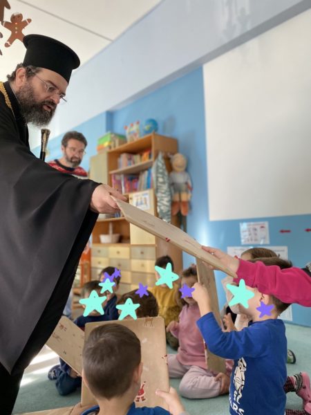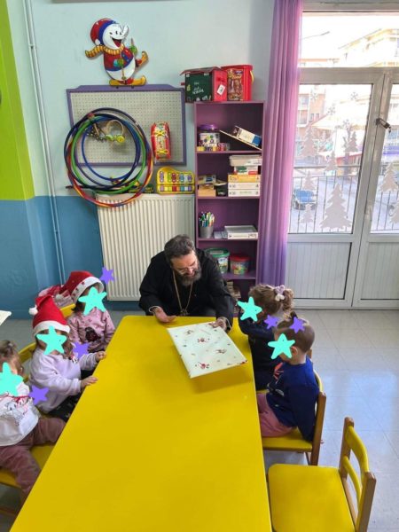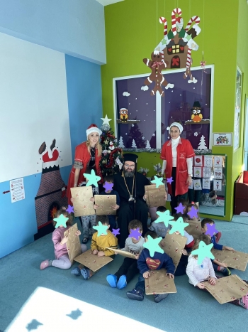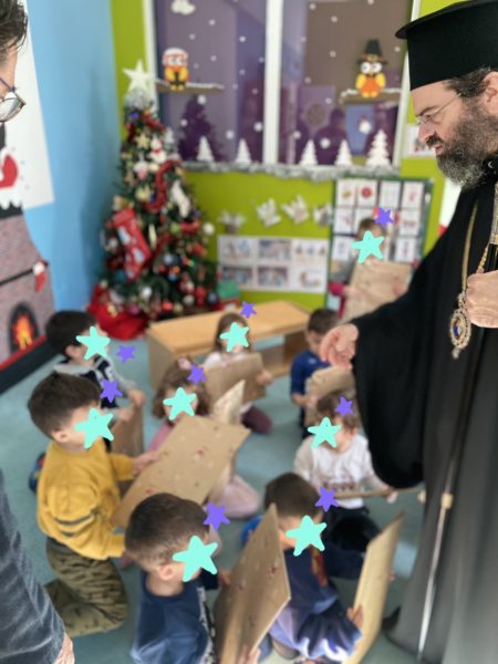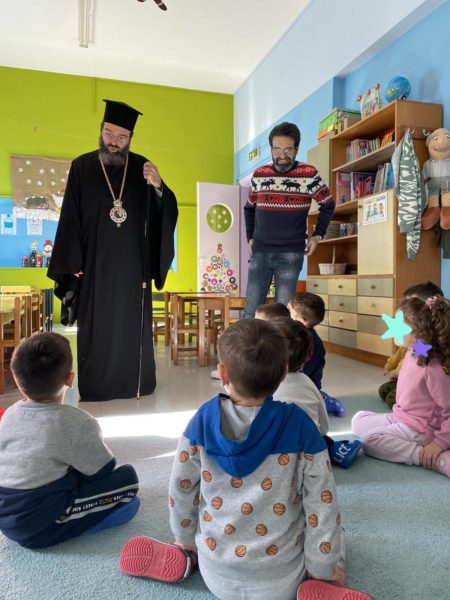 Οι μικροί μαθητές ευχαρίστησαν το Σεβασμιώτατο και έψαλαν τα κάλαντα και άλλα επίκαιρα τραγούδια.