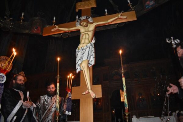 Ὁ Κύριός μας στέκει ἐνώπιόν μας καθήμενος στόν θρόνο Του τὸν Τίμιο Σταυρό. Στέκει μὲ τὰ χέρια ἀνοιχτά, μία τεράστια ἀγκαλιὰ γιά ὅλους.
