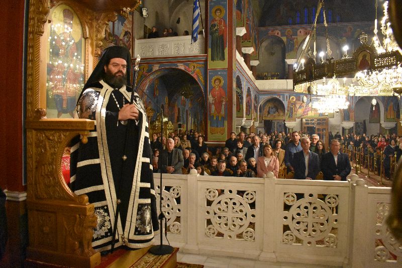 Ὁ Σεβασμιωτατος ἀπηύθυνε μεστόν λόγον οἰκοδομῆς καί παρακλήσεως στά πλήθη τῶν πιστῶν πού κατέκλυσαν τόν Καθεδρικόν Ναόν, ὅπου ἀνεφέρθη στήν ἀρετή καί τή δύναμη τῆς συγχωρήσεως, στόν καιρό τῆς μετανοίας πού καταργεῖ τόν πρόσκαιρο χρόνο, στούς πειρασμούς πού ἀκολουθοῦν καί τόν συμπαραστάση Κύριο, τό Μέγα Ἀρχιερέα Χριστό πού βοηθᾶ κάθε ὑπό τοῦ ἀντικειμένου διαβόλου πειραζόμενο πιστό, ἐνῶ χρησιμοποίησε πληθώρα πνευματικῶν παραδειγμάτων διά τῶν ὁποίων διαφαίνεται ἡ ἀξία τοῦ πνευματικοῦ ἀγῶνος καί ἡ χαρά καί ἡ ἀγαλλίασις τῆς κατακτήσεως ὑπερκοσμίων ἐπάθλων.