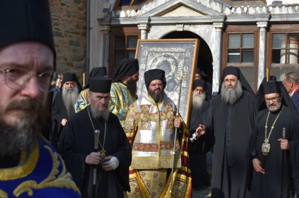 Ο Σεβασμιώτατος, κατόπιν πρόσκλησης του Καθηγουμένου της Ιεράς Μονής Ιβήρων Αρχιμανδρίτη Ναθαναήλ, προέστη των πανηγυρικών λατρευτικών συνάξεων σύμφωνα με την αγιορείτικη τάξη.