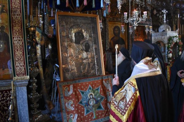 Το απόγευμα της κυριώνυμης ημέρας προέστη του μεθέορτου Εσπερινού και του Κτητορικού Μνημοσύνου. Εν συνεχεία προέστη της Επίσημης Δοξολογίας για την υποδοχή στην Ιερά Μονή του Πρωτεπιστάτου, Πανοσιολ. Ιερομονάχου Γεωργίου Βατοπαιδινού και της Ιεράς Κοινότητος και παρεκάθησε μετ’ αυτών στην εόρτιο τράπεζα.