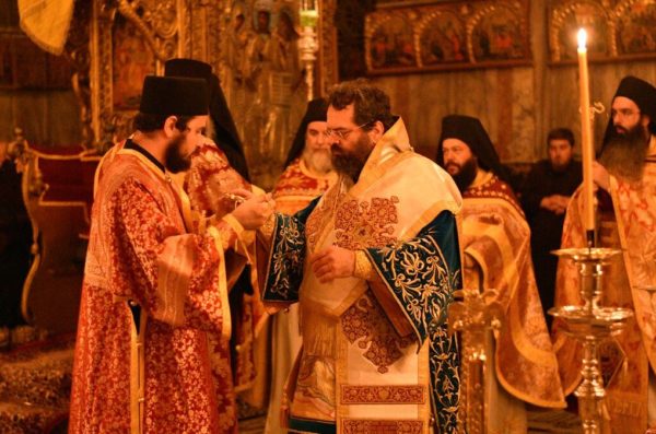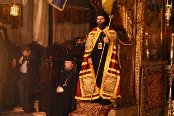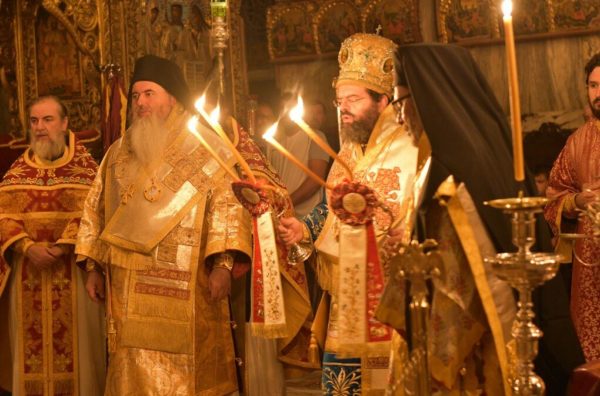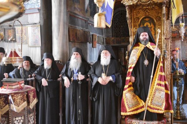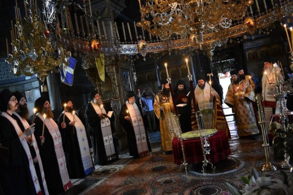 Στην πανηγυρική Ιερά Αγρυπνία, ιερούργησε μετά του Σεβ. Μητροπολίτου Ν. Κρήνης και Καλαμαριάς κ. Ιουστίνου, του Θεοφιλ. Επισκόπου Παλμύρας κ. Ιωάννου, του Πανοσιολ. Καθηγουμένου της Ιεράς Μονής Μεγίστης Λαύρας, Αρχιμανδρίτου Προδρόμου, του Πανοσιολ. Καθηγουμένου της Ιεράς Μονής Ιβήρων, Αρχιμανδρίτου Ναθαναήλ και λοιπών Κληρικών και αγιορειτών Πατέρων.