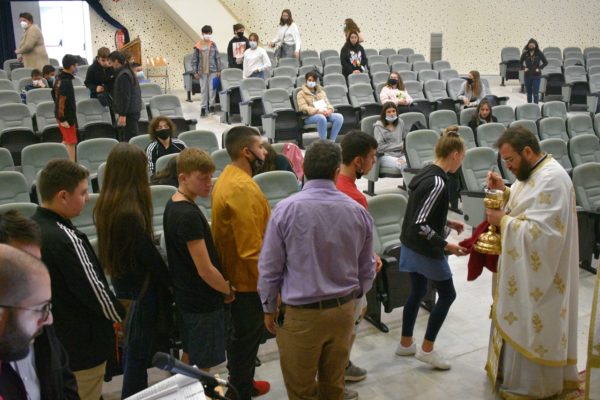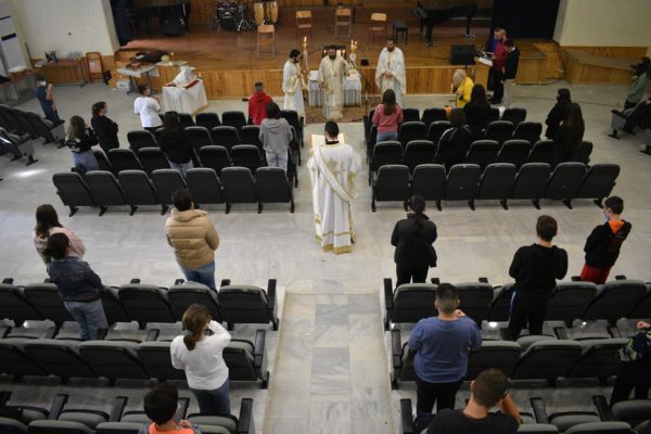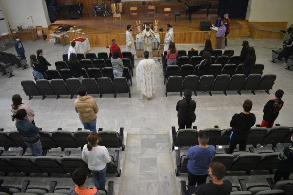 Ο Σεβασμιώτατος στο τέλος της Θείας Λειτουργίας επεξήγησε τα συμβαίνοντα κατά την διάρκεια της, και τα πνευματικά νοήματα που αποκομίζουμε από τη συμμετοχή μας στο Μυστήριο των Μυστηρίων. Επίσης ευχαρίστησε την διοίκηση του Σχολείου, τον Σύλλογο των Καθηγητών και τον Σύλλογο των Γονέων και Κηδεμόνων, κυρίως δε τα παιδιά για την προσευχητική συμμετοχή τους στη Θεία Λειτουργία.