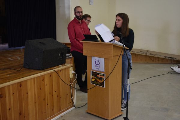 Τον λόγο κήρυξε μαθήτρια του σχολείου, η οποία αναφέρθηκε στον βίο του Οσίου και την προσφορά του στην υμνογραφία της Εκκλησίας.