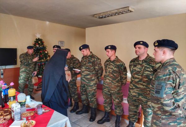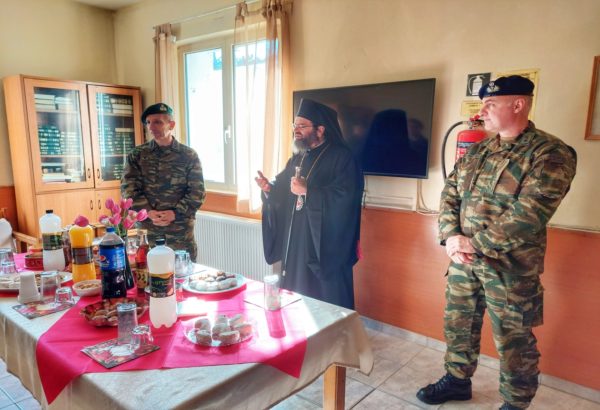 Ο Σεβασμιώτατος έγινε δεκτός από τον Διοικητή της 29ης Ταξιαρχίας Πεζικού, Ταξίαρχο Παναγιώτη Λιόντο και είχε την ευκαιρία να συναντήσει και να συνομιλήσει με τους στρατεύσιμους νέους, στους οποίους ευχήθηκε καλή, ευλογημένη και ειρηνική χρονιά με υγεία και καλό υπόλοιπο της θητείας τους.