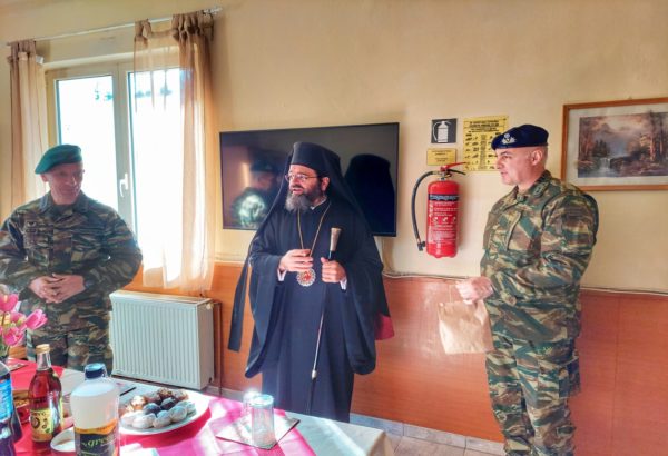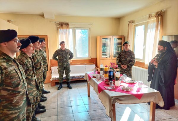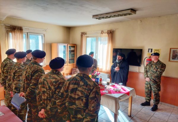 Ο Σεβασμιώτατος έγινε δεκτός από τον Διοικητή της 29ης Ταξιαρχίας Πεζικού, Ταξίαρχο Παναγιώτη Λιόντο και είχε την ευκαιρία να συναντήσει και να συνομιλήσει με τους στρατεύσιμους νέους, στους οποίους ευχήθηκε καλή, ευλογημένη και ειρηνική χρονιά με υγεία και καλό υπόλοιπο της θητείας τους.