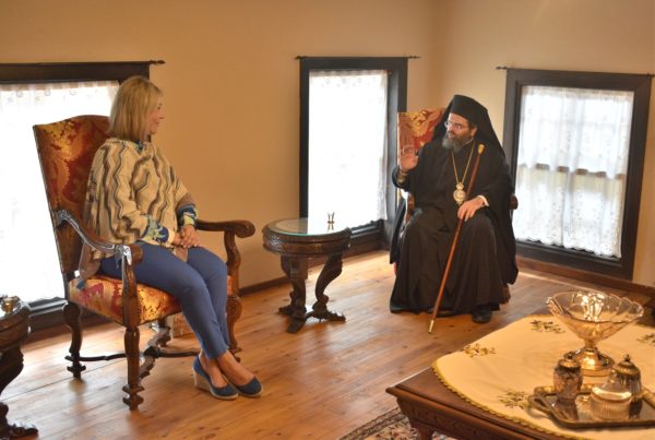 Επίσης ενημέρωσε την Υπουργό και την συνοδεία της για το πνευματικό, κοινωνικό και φιλανθρωπικό έργο της ακριτικής και ευαισθήτου Ιεράς Μητροπόλεώς Μαρωνείας και Κομοτηνής και ευχήθηκε σε όλους υγεία και κάθε καλό.