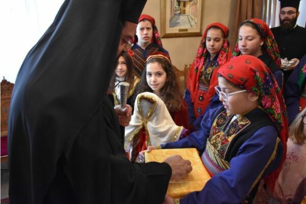 Τό μεσημέρι τοῦ Σαββάτον τοῦ Λαζάρου, 20ῆν Ἀπριλίου 2019, ὁ Σεβασμιώτατος Μητροπολίτης Μαρωνείας καί Κομοτηνῆς κ. Παντελεήμων ἐδέχθη στά Γραφεῖα τῆς Ἱερᾶς Μητροπόλεως τήν ἐπίσκεψιν τοῦ Προέδρου καί μελῶν τοῦ Μορφωτικοῦ Συλλόγου Κομοτηνῆς, καθώς καί παιδιῶν πού ἔσπευσαν νά ἀποδώσουν στόν Ποιμενάρχη τους τά παραδοσιακά κάλαντα τοῦ Λαζάρου καί νά εὐχηθοῦν ἀπό καρδίας.