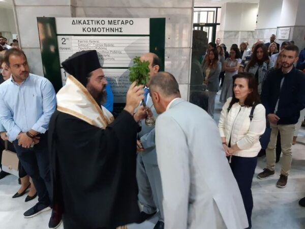 Τῆς ἀκολουθίας τοῦ Ἁγιασμοῦ προέστη σήμερα Παρασκευή, 20ῇ Σεπτεμβρίου 2019, ὁ Σεβασμιώτατος Μητροπολίτης Μαρωνείας καί Κομοτηνῆς κ. Παντελεήμων στό Δικαστικό Μέγαρο Ροδόπης ἐπ’ εὐκαιρίᾳ τῆς ἐνάρξεως τοῦ νέου δικαστικοῦ ἔτους.