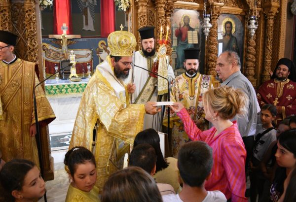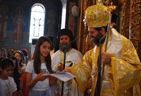 Σε όλους τους μαθητές, ο Σεβασμιώτατος επέδωσε αναμνηστικά για τη συμμετοχή τους και ευχήθηκε σε όλους υγεία, δύναμη, φωτισμό και καλό καλοκαίρι.
