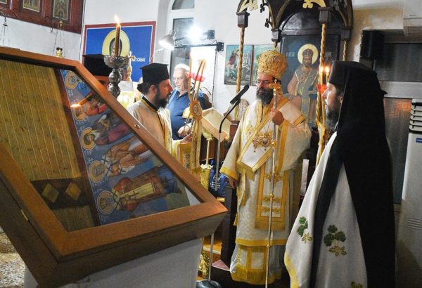Εν συνεχεία ο Σεβασμιώτατος χοροστάτησε κατά την Ακολουθία του Παρακλητικού Κανόνος προς την Υπεραγία Θεοτόκο και ιερούργησε στην Ιερά Αγρυπνία στον αυτόν Ιερό Ναό.