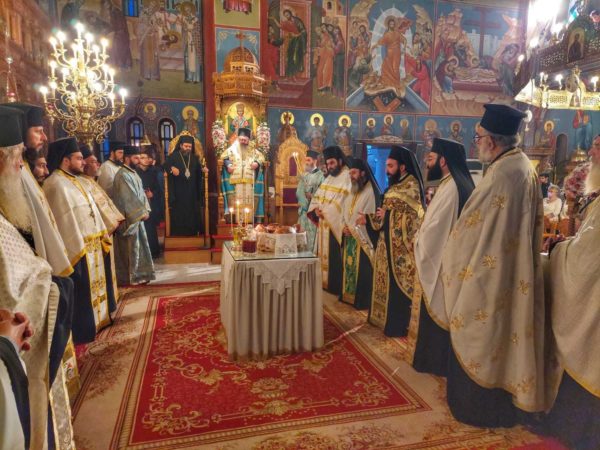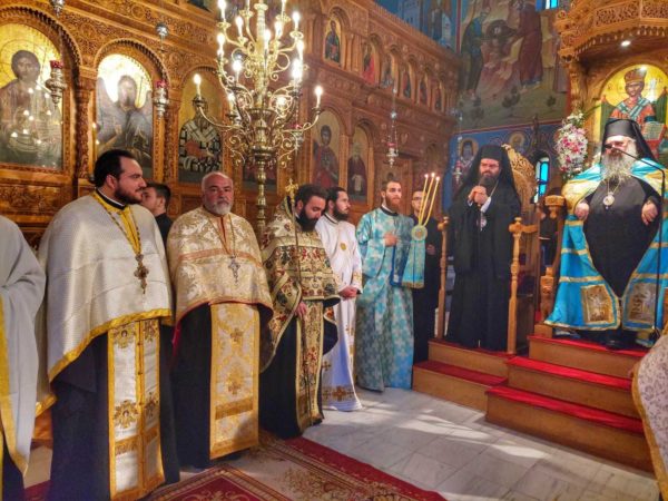 Ακολούθησε η τέλεση του Μέγα Πανηγυρικού Τρισαρχιερατικού Εσπερινού στον Ιερό Καθεδρικό Ναό Ευαγγελισμού της Θεοτόκου χοροστατούντος του Σεβασμιωτάτου Μητροπολίτη Λαγκαδά, Λητής και Ρεντίνης κ. Πλάτωνος και συγχοροστατούντων των Σεβασμιωτάτων Μητροπολιτών Ύδρας, Σπετσών και Αιγινής κ. Εφραίμ και Μαρωνείας και Κομοτηνής κ. Παντελεήμωνος.