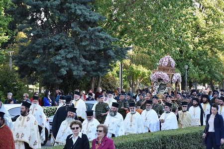 Οι επίσημοι εορτασμοί ξεκίνησαν το πρωί και το απόγευμα πλήθος κόσμου, εκατοντάδες πιστοί, άτομα όλων των ηλικιών, γυναίκες, άνδρες και μικρά παιδιά έραναν το πέρασμά Της με ροδοπέταλα.