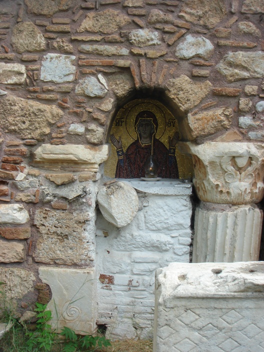 Το 1928 αποκαλύφθηκε ο πρωτοχριστιανικός ναός από την ανασκαφή που έκανε ο Κωνσταντίνος Κουρουνιώτης. Ήταν μία τρίκλιτη βασιλική με ημικυκλική αψίδα, 15,70μ. μήκους x 15.40μ. πλάτους, με δύο κιονοστοιχίες αποτελούμενες από πέντε κίονες. Εκτός από τον κυρίως ναό, ο οποίος διέθετε δύο διαδοχικούς νάρθηκες, η αρχαιολογική σκαπάνη αποκάλυψε επίσης ένα τετράγωνο βαπτιστήριο πρόσκτιστο στη βορειοδυτική πλευρά και στο κέντρο του υπάρχει σταυροειδής κολυμβήθρα χτισμένη με πλίνθους που φέρουν επένδυση από μαρμάρινες πλάκες, ενώ σώθηκε και επιγραφή που αναφέρει ως κτήτορα του βαπτιστηρίου τον “Αρτεμίσιο”.