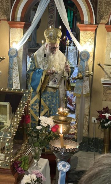 Την κυριώνυμη ημέρα, Παρασκευή 6 Δεκεμβρίου 2024, τελέστηκε ο Όρθρος και εν συνεχεία η Αρχιερατική Θεία Λειτουργία ιερουργούντος του Σεβασμιωτάτου Μητροπολίτου Προικοννήσου κ. Ιωσήφ ο οποίος στο κήρυγμα του αναφέρθηκε στον Άγιο Νικόλαο αλλά και στους αγώνες του έθνους μας με οδηγό τον Άγιο.