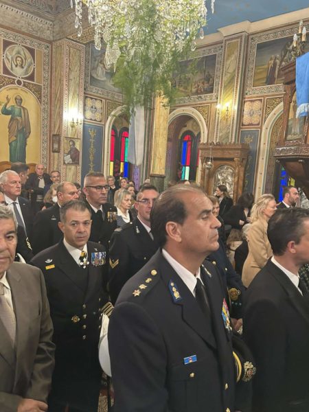 Στις Ιερές Ακολουθίες συμμετείχε ο Διοικητής του Ναυστάθμου, ο Υποδιοικητής, οι Διευθυντές, Αξιωματικοί Υπαξιωματικοί Ναύτες και Πολιτικό Προσωπικό του ΝΣ και του ΑΣ, η Πρόεδρος του Κινήματος Φωνή Λογικής κ. Α. Λατινοπούλου, ο Δήμαρχος Σαλαμίνας με το Δημοτικό Συμβούλιο, αλλά και κάτοικοι της νήσου Σαλαμίνας.