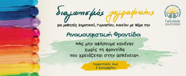 Ι.Μ Μεσογαίας και Λαυρεωτικής: Μαθητικός διαγωνισμός ζωγραφικής της «Γαλιλαίας» με θέμα την ανακουφιστική φροντίδα