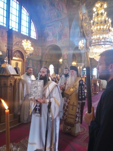 Συλλειτούργησαν ο Γενικός Αρχιερατικός Επίτροπος της Ιεράς Μητροπόλεως Αρχιμανδρίτης π. Τιμόθεος Αγγελής, οι εφημέριοι του Ναού π. Αλέξανδρος Λισάη και ο π. Αναστάσιος Αδαμαντίδης καθώς και οι Διάκονοι του Μητροπολίτη.