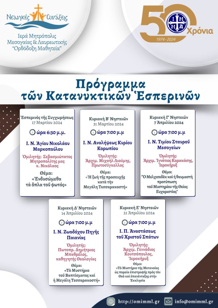 Πρόγραμμα κατανυκτικών Εσπερινών της Ιεράς Μητρόπολης Μεσογαίας