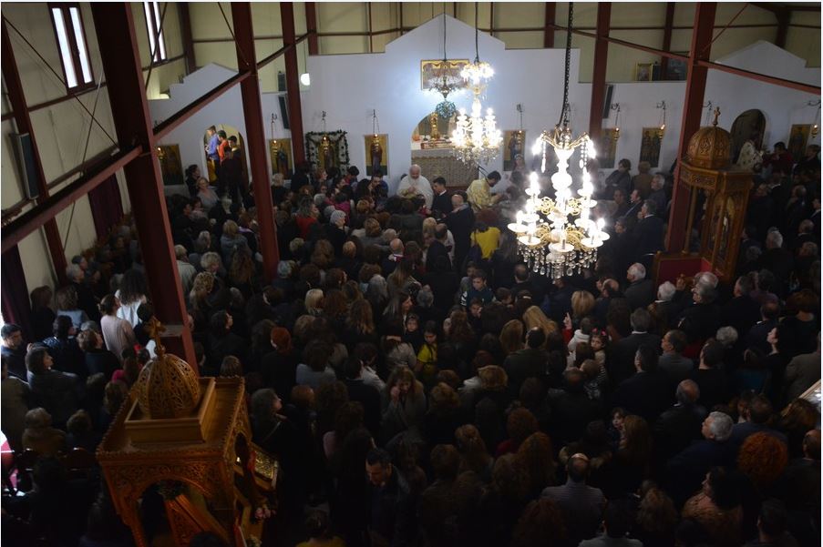 Πλήθος πιστών κατέκλεισε το πανηγυρίζοντα Ναό προκειμένου να προσκυνήσει την Εικόνα της Αγίας Αικατερίνης και να συμμετάσχει στη Θεία Λειτουργία.