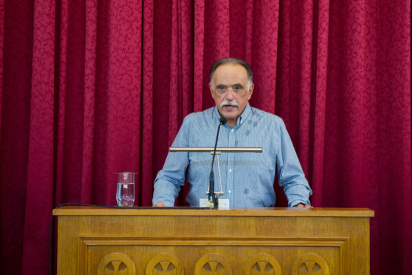 Μετά το πέρας του Αγιασμού πήρε το λόγο ο Πρόεδρος της Γ.Ε.Χ.Α. κ. Νικόλαος Χρονόπουλος και αφού ευχαρίστησε τον Σεβασμιώτατο για την παρουσία του, τον κάλεσε να ανέλθει στο βήμα ώστε να πραγματοποιήσει, την πρώτη ομιλία για τη φετινή χρονιά, με θέμα: «Η χριστιανική οικογένεια ως πρότυπο οικογένειας», την οποία παρακολούθησε πολυπληθές ακροατήριο.