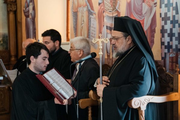 Μετά το πέρας του Όρθρου ο Σεβασμιώτατος τέλεσε την Ακολουθία επί διασαλεύσει Αγίας Τραπέζης, πλαισιωμένος από τον εφημέριο της κοινότητας Αμφείας Αρχιμανδρίτη Νεόφυτο Σαχλά, τον εφημέριο της πλησιόχωρης ενορίας του Αγρίλου π. Ιωάννη Κάργα και τον Διάκονο Θεόφιλο Κυριάκο, ενώ την ευταξία της Ακολουθίας υπηρέτησε με τάξη και μεγαλοπρέπεια ο Αρχιμ. Αλέξιος Σαραντόπουλος.