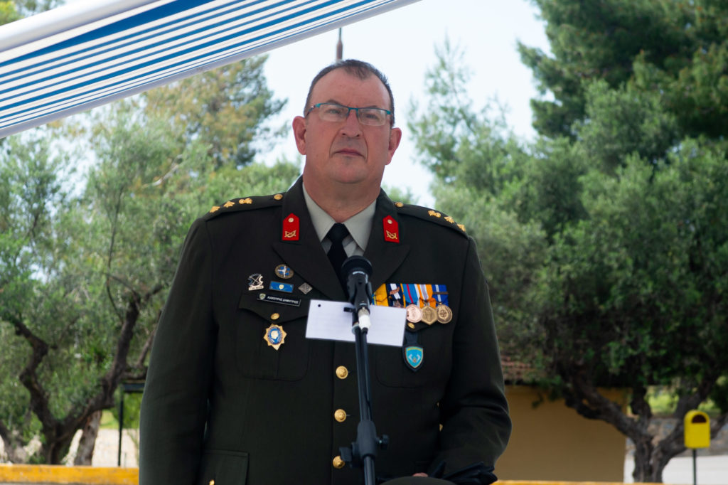 Εν συνεχεία, ο αποχωρήσας Διοικητής Αντισυνταγματάρχης Δημήτριος Λιάκουρης  παρέδωσε τη Διοίκηση στον Συνταγματάρχη Γεώργιο Χαρίτο, νέο διοικητή του 9ου Συντάγματος Πεζικού – ΚΕΝ Καλαμάτας, που εδρεύει στο στρατόπεδο Παπαφλέσσα, παρουσία του Διοικητή της ΔΙΚΕ Πελοποννήσου (IV Μεραρχία Πεζικού), Υποστρατήγου Αλέξανδρου Χατζηαλεξανδρή.