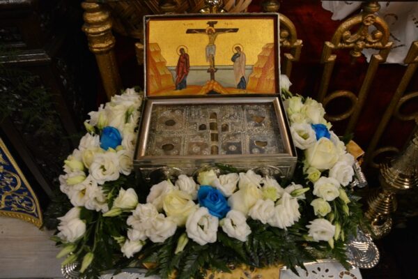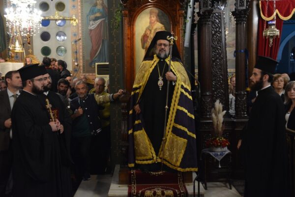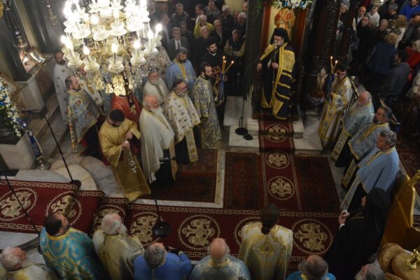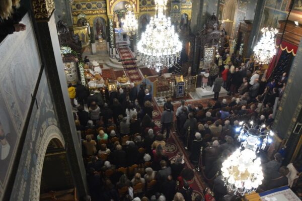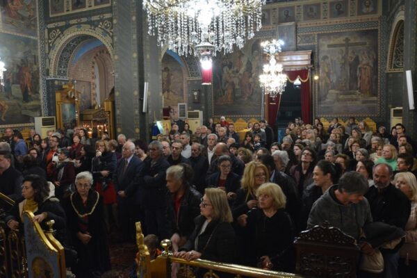 Καθ΄ όλη τη διάρκεια του Εσπερινού εκατοντάδες πιστών κατέκλεισαν τον Ιερό Ναό προκειμένου να συμμετάσχουν στην Ακολουθία, αλλά και να προσκυνήσουν την Ιερά Εικόνα και τμήμα λειψάνου του Αγίου.