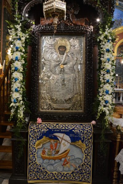 Οι λατρευτικές εκδηλώσεις εορτασμού του Αγίου Νικολάου θα συνεχιστούν αύριο, κυρία ημέρα της εορτής με την τέλεση του Όρθρου και της πανηγυρικής Αρχιερατικής Θείας Λειτουργίας.
