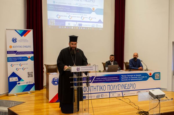 “Αξιότιμοι κύριοι Βουλευτές, κ. Αντιπεριφερειάρχα, κ. Αντιδήμαρχε, Ελλογιμώτατοι κ. Καθηγητές, λοιποί εκπρόσωποι φορέων και οικονομικών παραγόντων, αγαπητές και αγαπητοί φοιτήτριες και φοιτητές, κυρίες και κύριοι σύνεδροι.