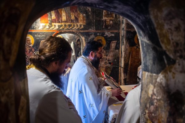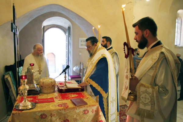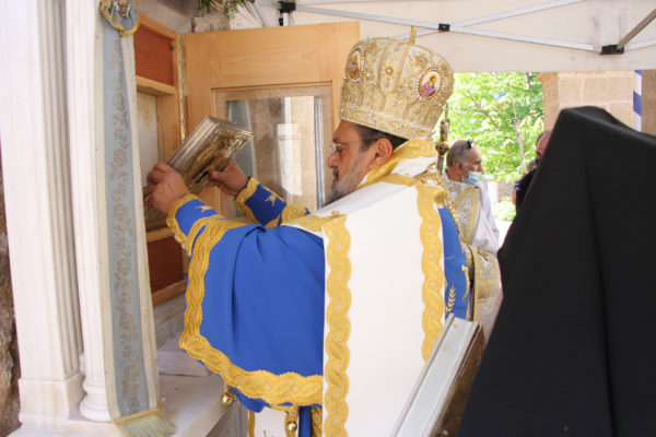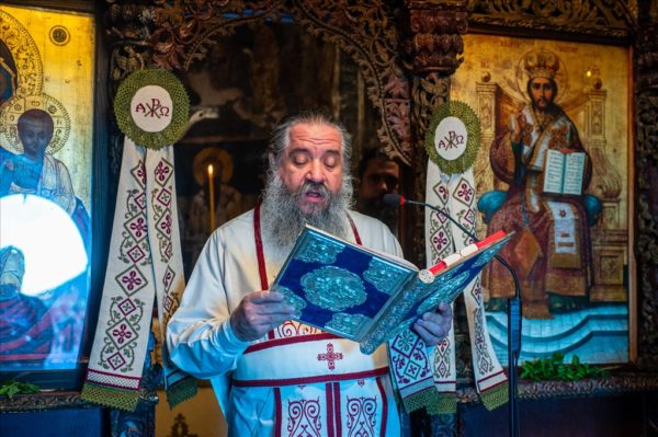 Κατά τον όρθρο χοροστάτησε ο Σεβασμιώτατος Μητροπολίτης Μεσσηνίας κ. Χρυσόστομος, ο οποίος προέστη της υποδοχής της Ιεράς και Θαυματουργού Εικόνος της Παναγίας Βουλκανιωτίσσης, ενώ στην συνέχεια τέλεσε την πανηγυρική Θεία Λειτουργία, πλαισιούμενος από τον Καθηγούμενο της Μονής Αρχιμ. Προκόπιο Σμυρνή και τους Διακόνους του.