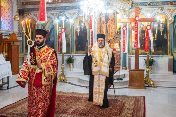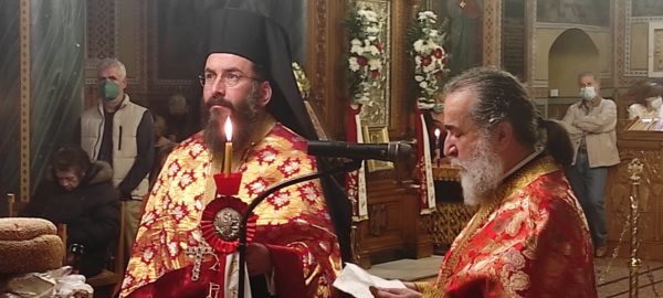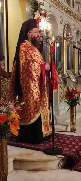 Στον Ιερό Ναό του Αγίου Γεωργίου Τριόδου χοροστάτησε και προέστη της Ακολουθίας ο Σεβασμιώτατος Μητροπολίτης Μεσσηνίας κ. Χρυσόστομος, πλαισιωμένος από τον εφημέριο του ναού Πρωτοπρεσβύτερο Διονύσιο Καλογερόπουλο, τον εκ Τριόδου καταγόμενο Πρωτοπρεσβύτερο Γεώργιο Γιαννόπουλο και τον Διάκονο Θεόφιλο Κυριάκο.