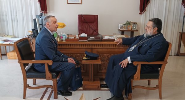 Ο Μητροπολίτης κ. Χρυσόστομος ευχήθηκε στον Ταξίαρχο κάθε επιτυχία στα νέα του καθήκοντα, τονίζοντας ότι αποχαιρετά ένα ικανότατο Αξιωματικό της Αεροπορίας με ήθος και ψυχική ευγένεια.