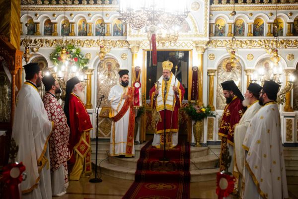 Προ του πέρατος της Θείας Λειτουργίας ο Σεβασμιώτατος ευχήθηκε, τόσο στους παρισταμένους όσο και σε όλο το πλήρωμα της πανηγυριζούσης ενορίας, ο εκ νεκρών Αναστάς Κύριος και Θεός ημών να αξιώσει τους πάντες να εορτάσουμε και του χρόνου την Ανάστασή Του.