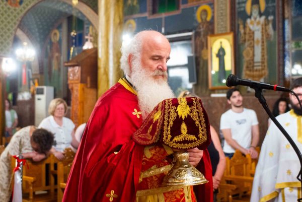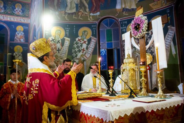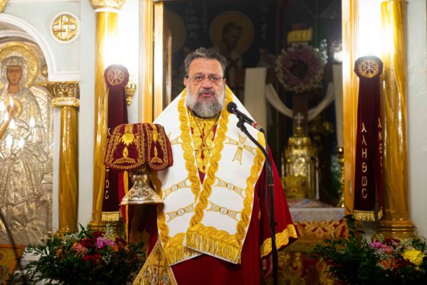 Προ του πέρατος της Θείας Λειτουργίας ο Σεβασμιώτατος ευχήθηκε, τόσο στους παρισταμένους όσο και σε όλο το πλήρωμα της πανηγυριζούσης ενορίας, ο εκ νεκρών Αναστάς Κύριος και Θεός ημών να αξιώσει τους πάντες να εορτάσουμε και του χρόνου την Ανάστασή Του.