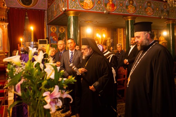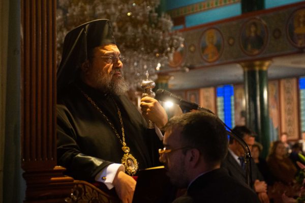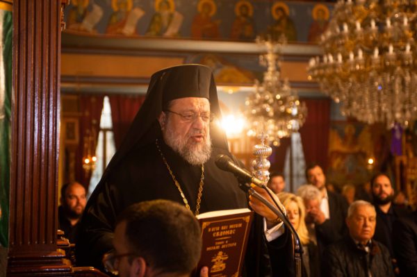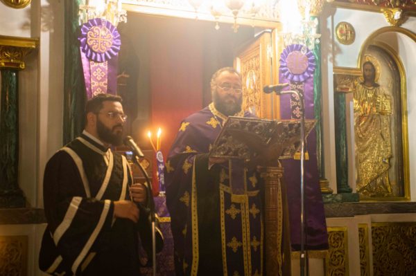 Τον Σεβασμιώτατο πλαισίωσαν ο εφημέριος του Ναού και Αρχιερατικός Επίτροπος Διαβολιτσίου Πρωτοπρεσβύτερος Κωνσταντίνος Ανδριόπουλος και ο Διάκονος Θεόφιλος Κυριάκος. Προ του πέρατος της Ακολουθίας ο Σεβασμιώτατος κηρύττοντας τον θείο λόγο αναφέρθηκε στον Νυμφίο Χριστό και στα μηνύματα που μας προβάλει δια Αυτού η Εκκλησία μας.