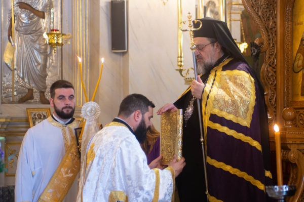 Ο Σεβασμιώτατος Μητροπολίτης Μεσσηνίας κ. Χρυσόστομος χοροστάτησε κατά την Ακολουθία στον Ιερό Μητροπολιτικό Ναό της Υπαπαντής του Χριστού Καλαμάτας, πλαισιωμένος από τους εφημερίους του Ναού, Πρωτοπρεσβυτέρους Κρεσφόντη Πουλόπουλο και Σωτήριο Τζαϊλέα και τους Διακόνους Θεόφιλο Κυριάκο και Ηλία Διαμαντόπουλο.