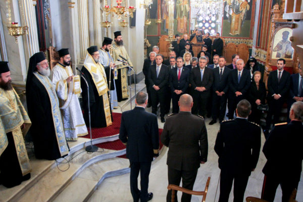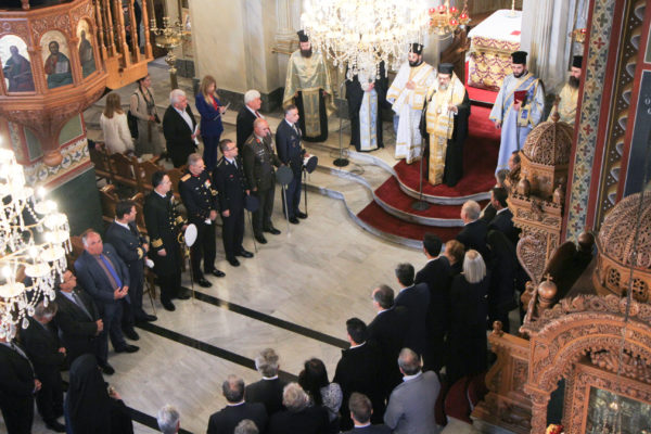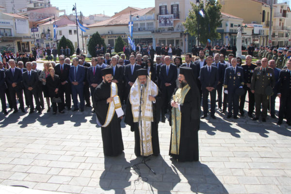 Στην επίσημη Δοξολογία, η οποία τελέστηκε στον Ιερό Μητροπολιτικό Ναό της Υπαπαντής του Χριστού, χοροστάτησε ο Σεβασμιώτατος Μητροπολίτης Μεσσηνίας κ. Χρυσόστομος, παρουσία της πολιτικής και στρατιωτικής ηγεσίας.