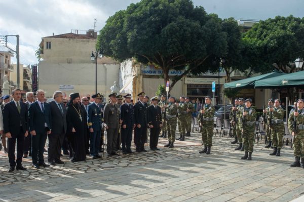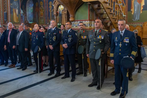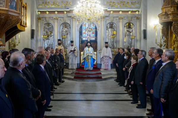 Μετά το πέρας της Θείας Λειτουργίας τελέσθηκε η καθιερωμένη Δοξολογία υπέρ των Ενόπλων Δυνάμεων και εν συνεχεία άπαντες οι παρόντες εκπρόσωποι των Αρχών της πόλης και του Νομού, μετέβησαν στο Ηρώον της Πλατείας 23ης Μαρτίου όπου εψάλη επιμνημόσυνη δέηση και έλαβε χώρα η κατάθεση στεφάνων.