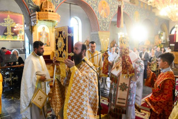 Προ του πέρατος της Θείας Λειτουργίας ο π. Φίλιππος, κηρύττοντας τον θείο λόγο, αναφέρθηκε στην σημερινή ημέρα τονίζοντας το γεγονός ότι ο Μέγας Κωνσταντίνος κατέστη ουσιαστικά ο θεμελιωτής της ευρωπαϊκής ιδέας και του ευρωπαϊκού πολιτισμού. Τόνισε χαρακτηριστικά ότι “Μέσα σε ένα ομιχλώδες και στείρο πολιτικό περιβάλλον, η Ευρώπη πορεύεται σε μια εκλογική αναμέτρηση, για την ανάδειξη εκπροσώπων των χωρών της στην Ευρωβουλή. Όμως δυστυχώς ως πολίτες και συμμέτοχοι σε αυτήν την πορεία δεν αντιλαμβανόμαστε για ποια Ευρώπη καλούμαστε να ψηφίσουμε και με ποια προοπτική. Έρχεται λοιπόν ο Μέγας Κωνσταντίνος και προβάλλει ένα πρότυπο ευρωπαϊκής προοπτικής και προσανατολισμού, μέσα από το σύνολο έργο του. Έρχεται και λέει στους ηγέτες των ευρωπαϊκών χωρών «Πάρτε παράδειγμα από την Δημοκρατία και την Ενότητα που δίδαξα με την συγκρότηση της Α’ Οικουμενικής Συνόδου. Πάρτε παράδειγμα από την Ελευθερία που κατοχύρωσα ως δικαίωμα στον άνθρωπο, μέσα από το Διάταγμα των Μεδιολάνων που εξέδωσα. Πάρτε παράδειγμα του σεβασμού στην Ιστορία και στον Πολιτισμό που ενέπνευσα στους λαούς μέσα από την μεταφορά της πρωτεύουσας της Αυτοκρατορίας στην Κωνσταντινούπολη. Σταθείτε απέναντι σε όποιον με νόμους και ιδεοληψίες προσπαθεί να αποδομήσει και να καταλύσει την Ιστορία και τον Πολιτισμό, μετατρέποντας τους ναούς σε τζαμιά. Υπερασπιστείτε τη σημαία του Σταυρού και μην αφήνετε άλλες πολύχρωμες σημαίες να γίνονται δήθεν μοντέρνα σύμβολα!!!».”