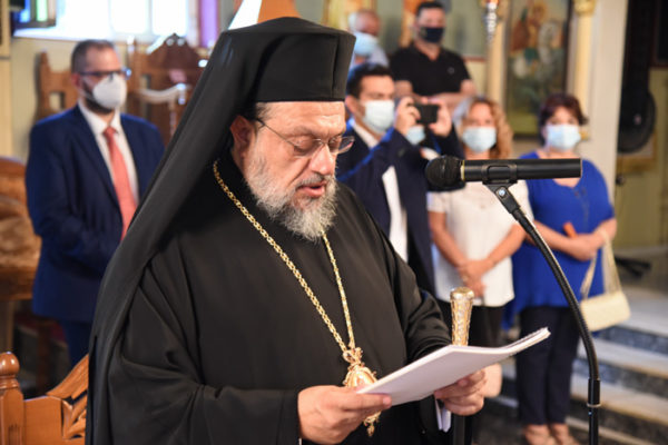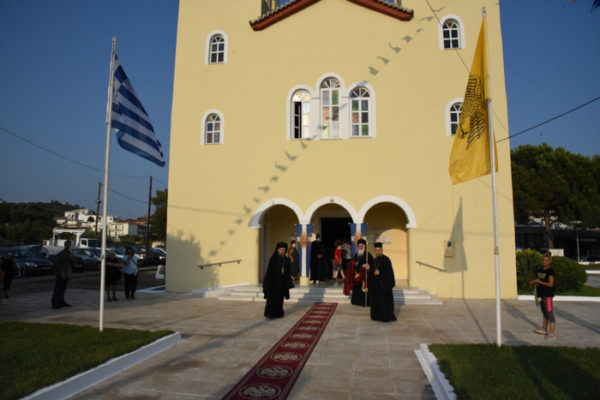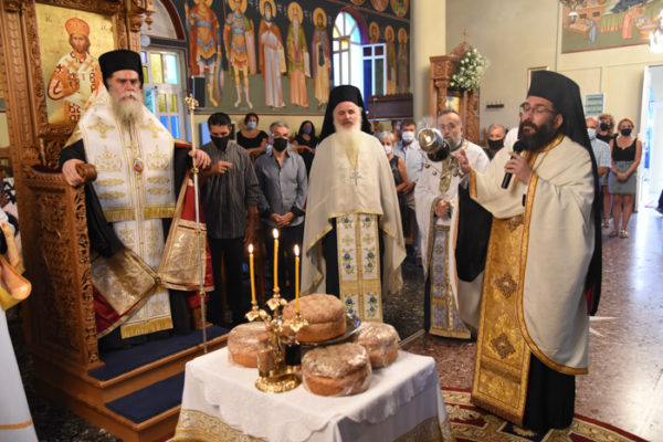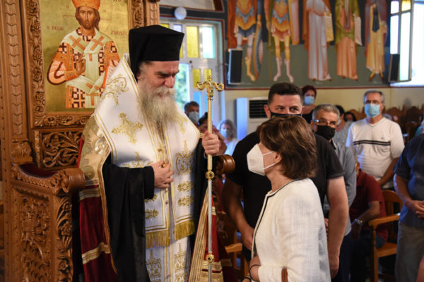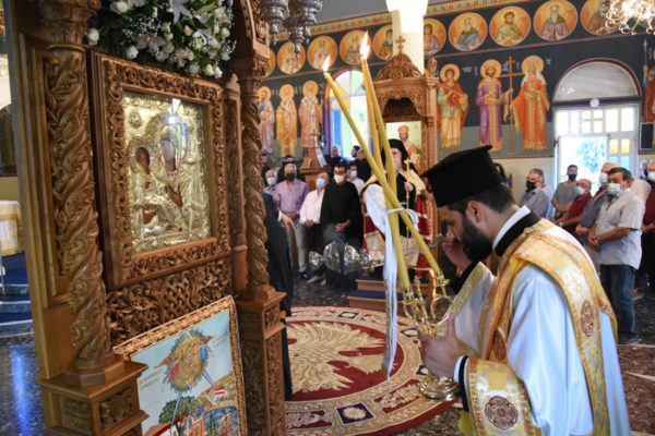 Πλήθος πιστών συνέρρευσε, τηρώντας τα υγειονομικά μέτρα στον εορτάζοντα Ιερό Ναό για να συμμετάσχει στην Ακολουθία και να προσκυνήσει την Θαυματουργό Εικόνα της Παναγίας.