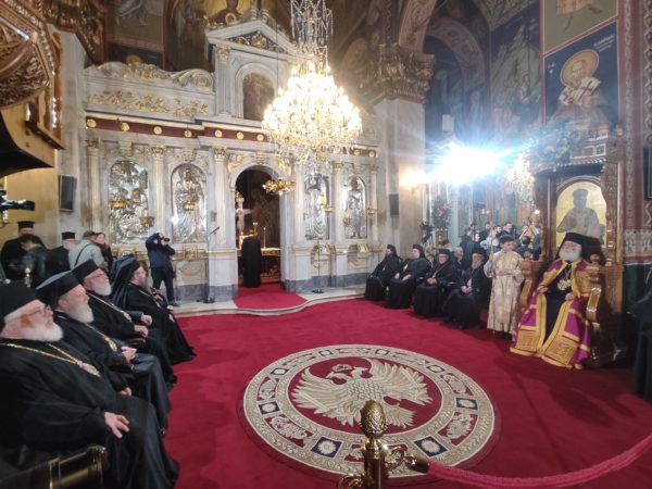 Ο Μακαριώτατος χοροστάτησε του πανηγυρικού πολυαρχιερατικού Εσπερινού, με την παρουσία των Σεβ. Μητροπολιτών Γέροντος Λεοντοπόλεως κ. Γαβριήλ, Γουϊνέας κ. Γεωργίου, Καρθαγένης κ. Μελετίου, του Θεοφιλ. Επισκόπου Τολιάρας κ. Προδρόμου, καθώς και των Σεβ. Μητροπολιτών Μονεμβασίας και Σπάρτης κ. Ευσταθίου, Διδυμοτείχου, Ορεστιάδος και Σουφλίου κ. Δαμασκηνού, Χαλκίδος, Ιστιαίας και Βορείων Σποράδων κ. Χρυσοστόμου, Ιλίου, Αχαρνών και Πετρουπόλεως κ. Αθηναγόρου, Μεγάρων και Σαλαμίνος κ. Κωνσταντίνου, Σταγών και Μετεώρων κ. Θεοκλήτου και οικείου Ποιμενάρχου κ. Χρυσοστόμου.