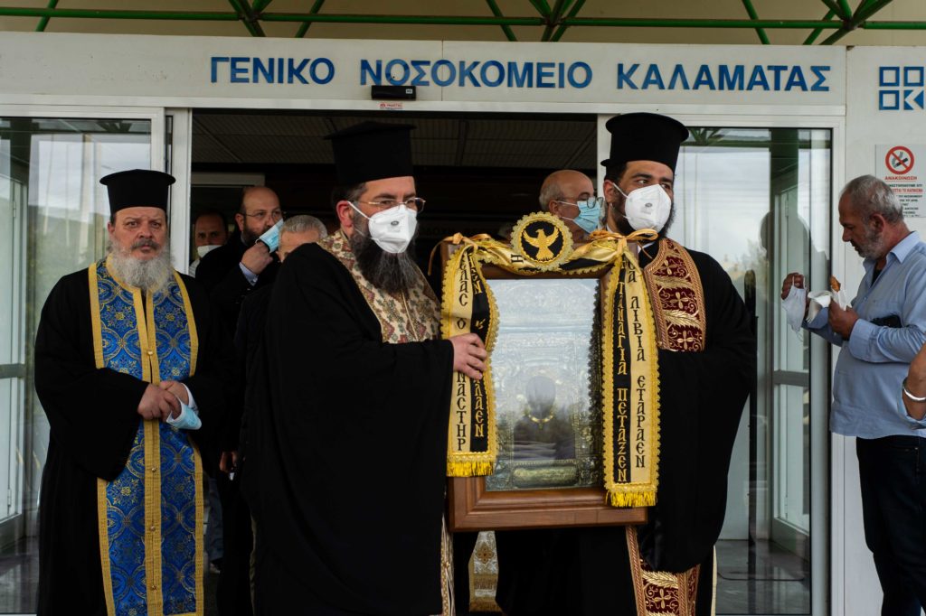 Την εικόνα μετέφερε ο Πρωτοσύγκελλος της Ιεράς Μητροπόλεως Μεσσηνίας Αρχιμ. Φίλιππος Χαμαργιάς, συνοδευόμενος από τα μέλη του Δ.Σ. του Ιδρύματος “Παναγία Σουμελά” και κληρικούς της Καλαμάτας, ώστε να λάβουν δύναμη και ευλογία οι ασθενείς και το ιατρικό και νοσηλευτικό προσωπικό.