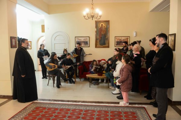 Χριστουγεννιάτικα κάλαντα και παραδοσιακά τραγούδια έψαλαν σήμερα, Τρίτη 24 Δεκεμβρίου 2024, στο Σεβασμιώτατο Μητροπολίτη Μεσσηνίας κ. Χρυσόστομο, ομάδες παιδιών, μεικτή Χορωδία στρατευσίμων του 9ου Σ.Π. και της 120 Π.Ε.Α., μαθητές του Μουσικού Σχολείου Καλαμάτας, του Γυμνασίου Παραλίας, του 17ου, του 7ου, 8ου και 13ου Δημοτικών Σχολείων της πόλεως, η Σχολή Βυζαντινής Μουσικής, καθώς και ομάδα νηπίων του «Παπαδοπουλείου» παιδικού σταθμού της Ι. Μητροπόλεως Μεσσηνίας.