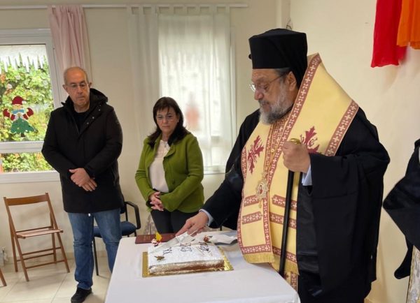 Ο Μητροπολίτης ευλόγησε και έκοψε την πίτα ευχόμενος σε όλους καλή και ευλογημένη χρονιά με υγεία, ευτυχία και κάθε καλό παρά Θεού.